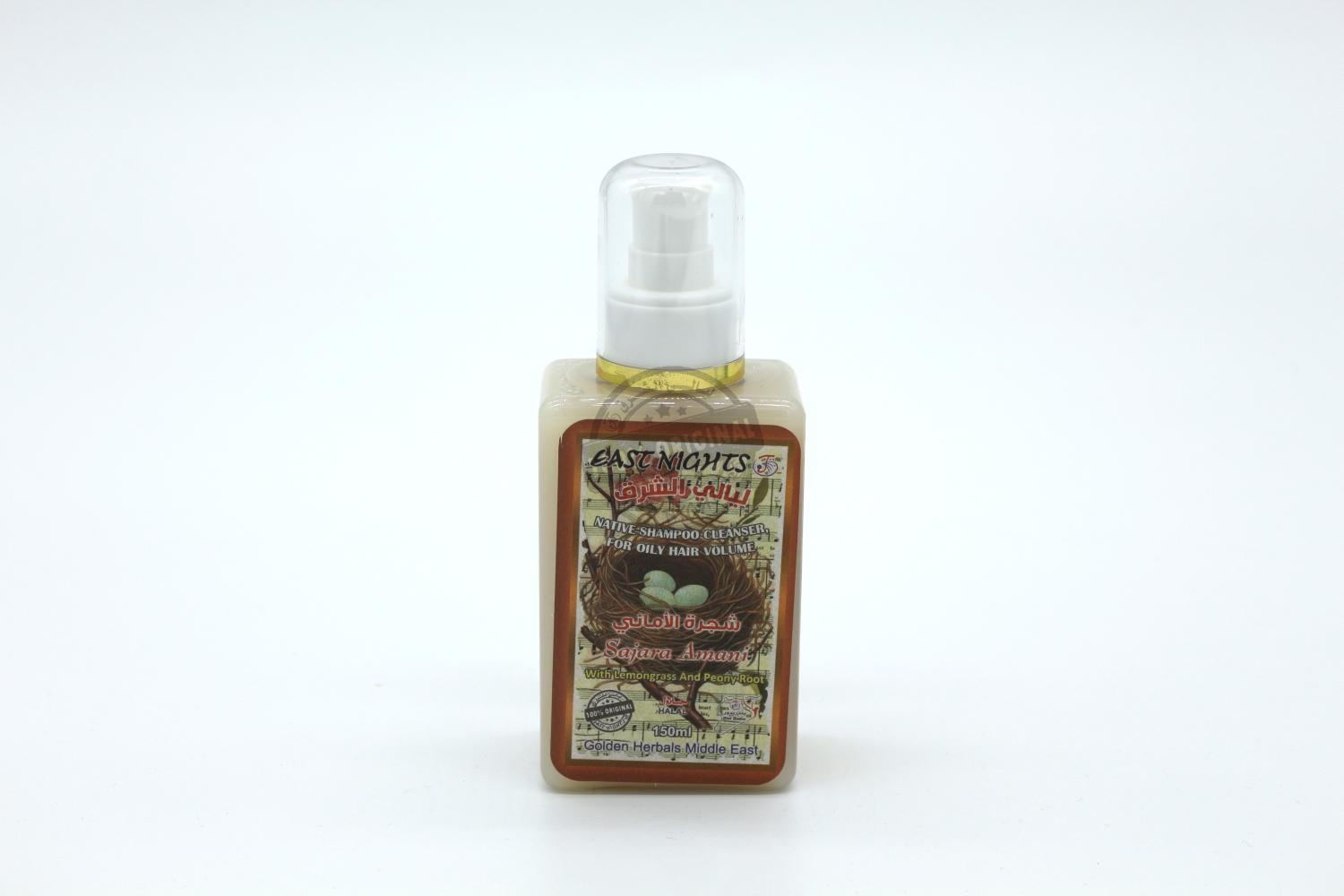 Нативный органический шампунь Sajara Amani «Дерево желаний» Национального сирийского производства восточной косметики East Nights эффективно очищает волосы, регулирует деятельность сальных желез. Обладает бактерицидным, антисептическим, противовоспалительным действием. Способствует нормализации обменных процессов и улучшению состояния кожи головы. Увеличивает объем и густоту волос. Масло листьев лемонграсса питает корни волос, устраняет проблемы кожи головы, уменьшает жирность волос, увеличивает густоту и объем волос. Масло корневища пиона уклоняющегося улучшает регенерацию клеток и тканей, укрепляет луковицы, интенсивно восстанавливает повреждения волос, уплотняет структуру волос. Активизирует рост новых волос. Нормализует водно-жировой баланс в клетках кожи головы.