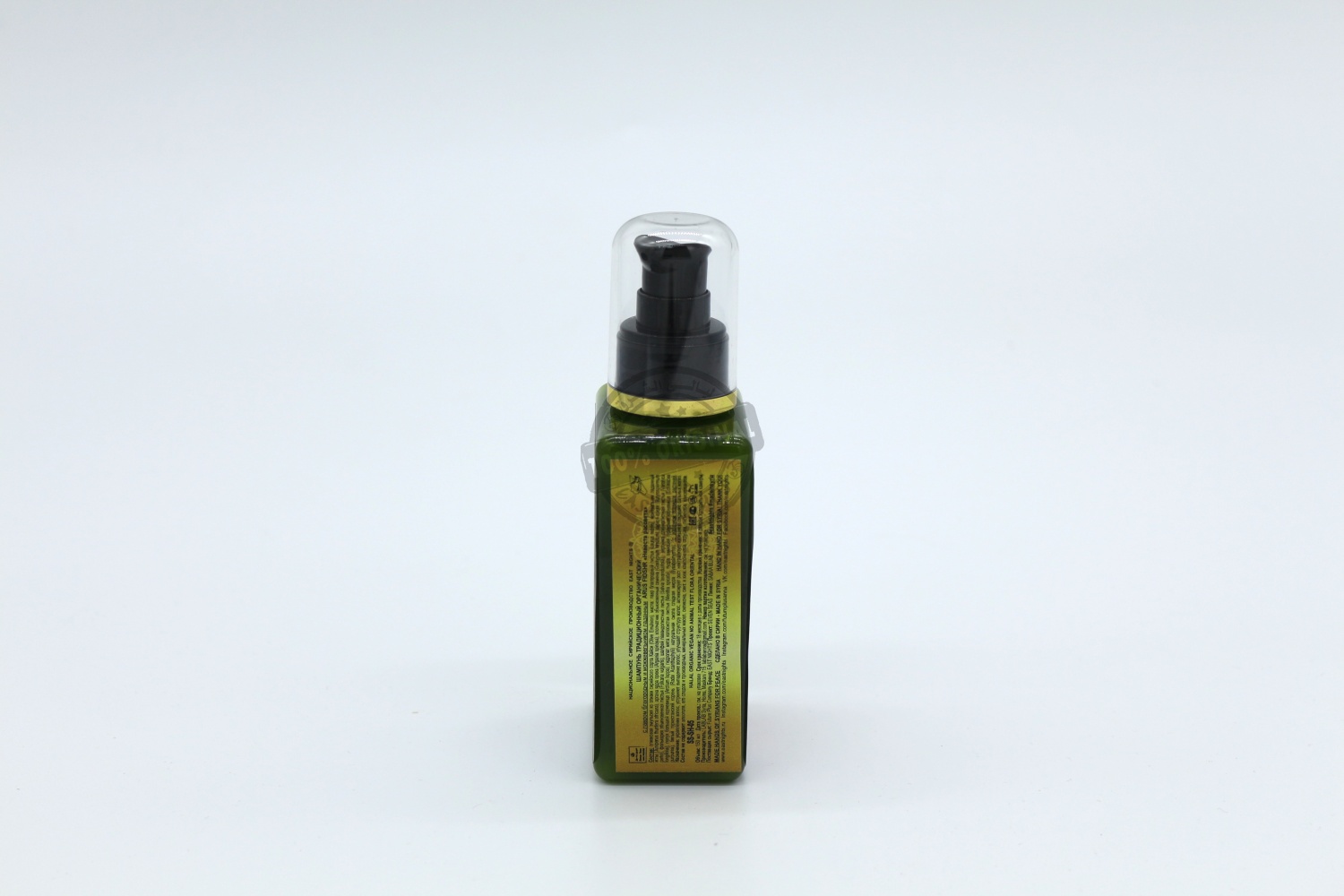 Состав: оливковая эмульсия из оливки сирийского сорта Кайси (Olive Emulsion), масла: лавр благородный - листья (Laurus nobilis), можжевельник ладанный - иглы (Juniperus thurifera africana), аргана - ядра ореха (Argania spinosa), хлопчатник обыкновенный - семена (Gossypium hirsutum), карите - орехи (Butyrospermum parkii), фолькария обыкновенная - листья (Folkaria vulgaris), шалфей лавандолистный - листья (Salvia lavandulifolia), вероника длиннолистная - листья (Veronica longifolia), лопух большой - корневище (Arctium lappa), гидролат: мята колосистая - листья (Mentha spicata), пудра: эхинацея пурпурная - корневище (Echinacea purpurea), белый туркестанский корень (Radix Acanthaphylii), натуральная смола - сладкая мирра (Bysabolmyrrhe). *С указанием подвидов растений