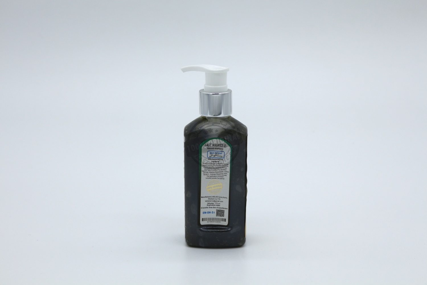 Натуральный оливково-лавровый шампунь Bint Al Vali «Дочь Главы» производства East Nights не содержит алкоголя, его следов и производных, минеральных масел, синтетических и химических компонентов, отдушек, пигментов и консервантов. Продукт изготовлен из живых растений и обеспечивает натуральный уход за волосами.